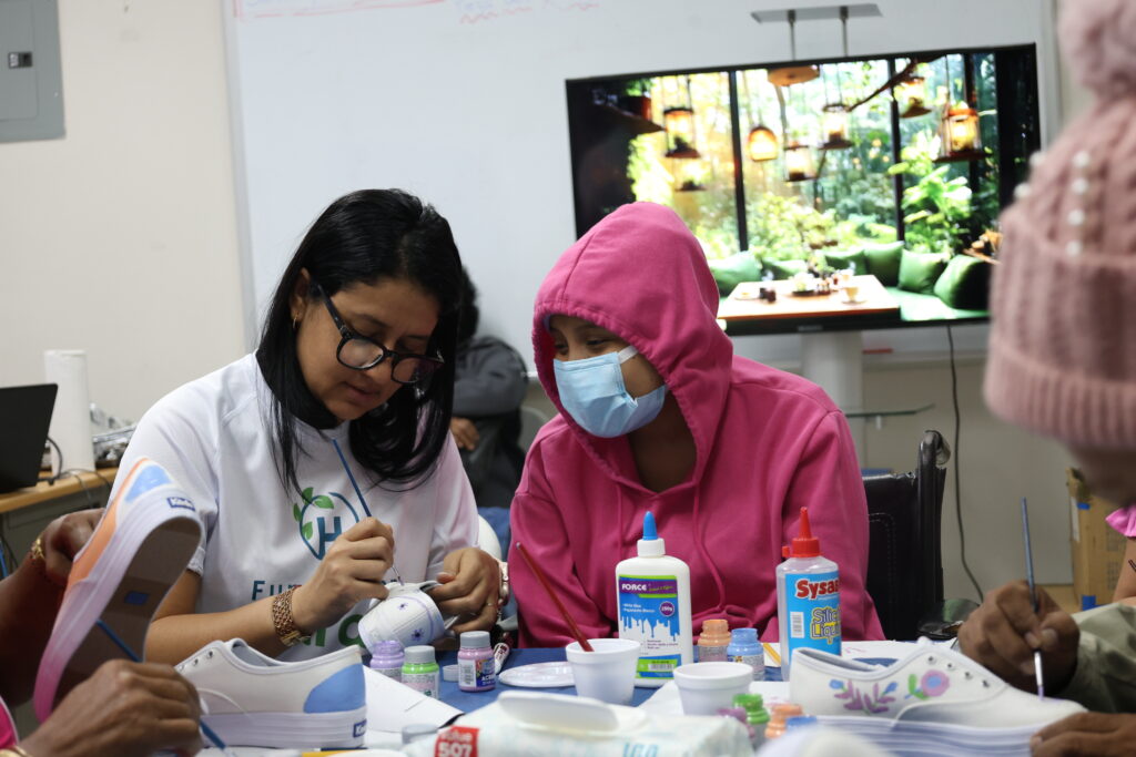 En alianza con FundaCáncer y con el apoyo de KEDS, realizamos un taller artístico junto al equipo de Terapia Ocupacional del hospital. Más de 30 pacientes participaron en una jornada llena de color, pintando zapatillas y expresando su creatividad. Una experiencia que promovió el bienestar emocional, la relajación y la energía positiva a través del arte.
